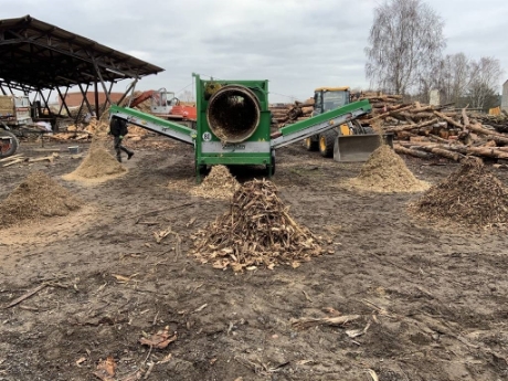 Cribadora móvil - remolcable de tambor (trommel) de 3.500 kg de peso, de accionamiento eléctrico o por generador, con capacidad para cribado de 5 a 30 m3 a la hora, para compost, tierra vegetal, biomasa, RCDs (residuos de construcción y reciclaje), vídrio, carbón, etc., para obtener hasta 3 fracciones o productos.